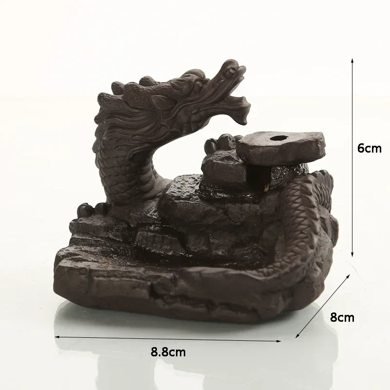 Expertly crafted with stunning dragon design, this incense burner not only adds a touch of elegance and charm to any space, but also allows for backflow of smoke, creating a mesmerizing effect. Perfect for home decor, office spaces, and teahouses. Enhance your environment with this unique and functional piece.
